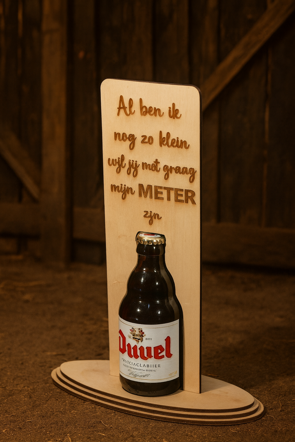 Duvel flesje met “wil jij mijn Meter zijn?”